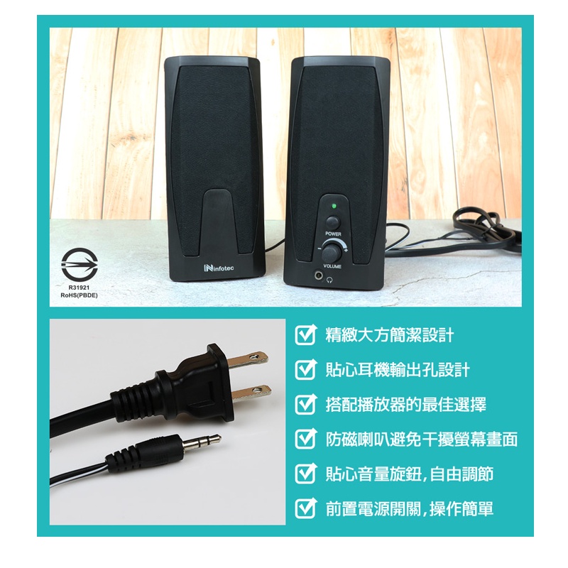 Infotec 英富達 SP-101 240W(P.M.P.O) 2.0聲道桌上型多媒體喇叭 二件式喇叭 耳機輸出孔設計