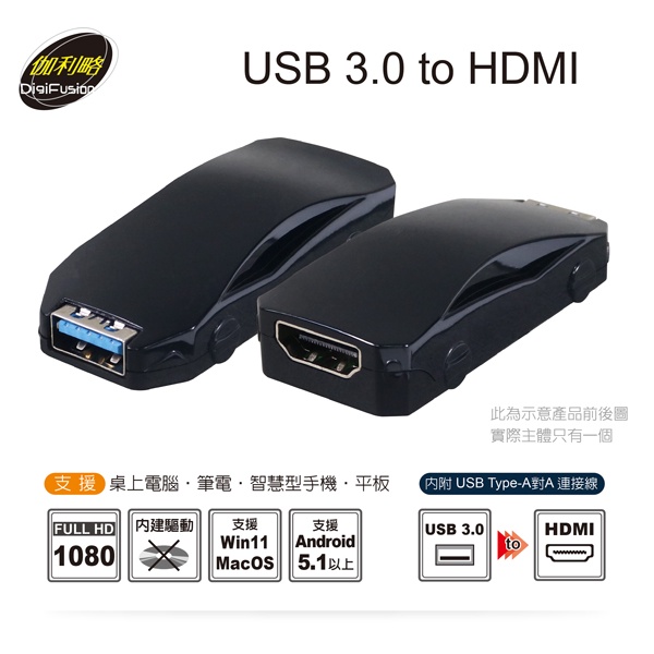 伽利略 USB3.0 to HDMI轉換器 U3HDMI HDMI最高解析度可支援1080p 支援電腦/手機/平板