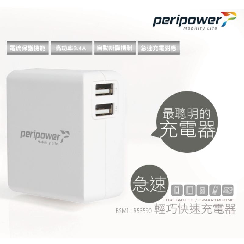 PeriPower 3.4A 雙USB 輕巧 快速充電器+手機充電線 豆腐頭 (7PP6VD0002)手機快速充電器