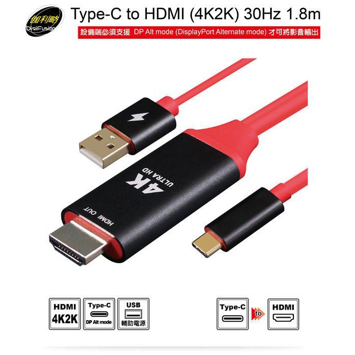 伽利略 Type-C to HDMI (4K2K) 30Hz 1.8m 支援 Mac TCH300