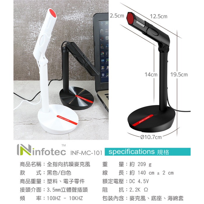 infotec 英富達 INF-MC-101 桌上型/分離式 全指向抗噪麥克風 MC101 可分離式底座 全方位收音