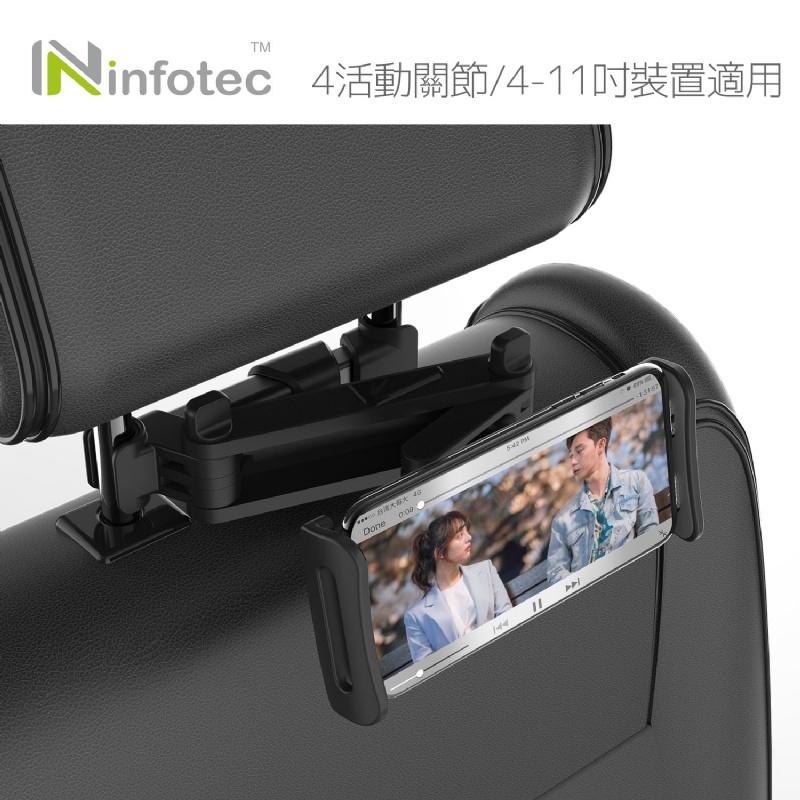 infotec 英富達 INF-CH-102 汽車椅背頭枕專用 手機/平板伸縮支架(4吋-11吋)角度自由調整CH102