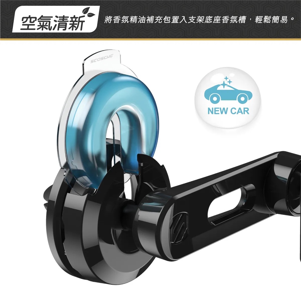 SCOSCHE 香氛車架系列 出風口旋轉臂手機架 UH4VP2FR-EU5 旋轉臂式設計 快取夾具設計 萬向球頭關節