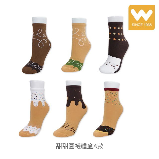 【W 襪品】食尚造型 男女共用襪- doughnut 甜甜圈襪 6雙入禮盒