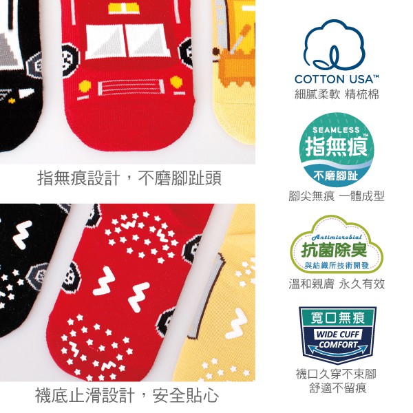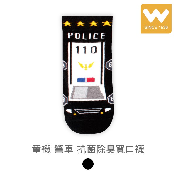 【W 襪品】童襪 警車 抗菌除臭寬口襪