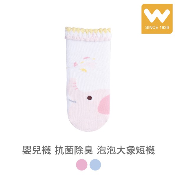 【W 襪品】嬰兒襪 泡泡大象 抗菌除臭 短襪