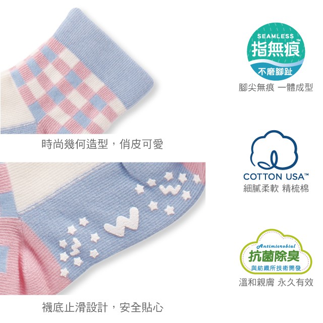 【W 襪品】嬰兒襪 幾何 抗菌除臭寬口 短襪
