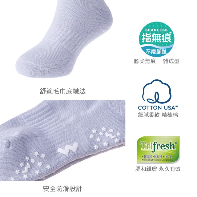 【W 襪品】 童襪 Trifresh 抗菌除臭 毛巾底 短襪