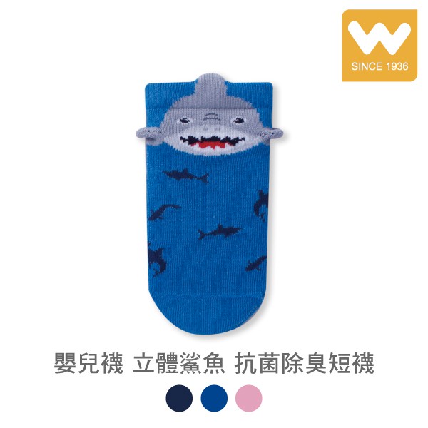 【W 襪品】嬰兒襪 立體鯊魚 抗菌除臭短襪