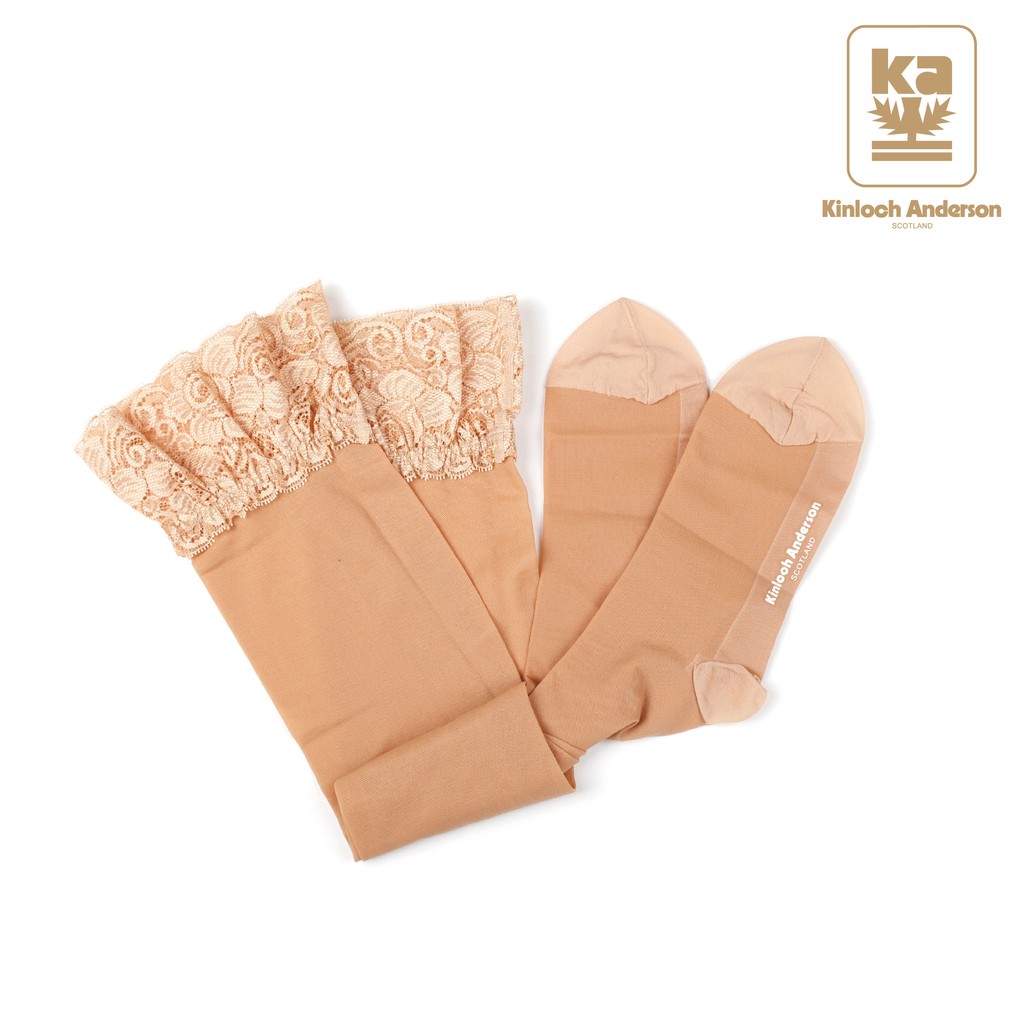 【W 襪品】女襪 200丹 蕾絲膝上 加壓襪