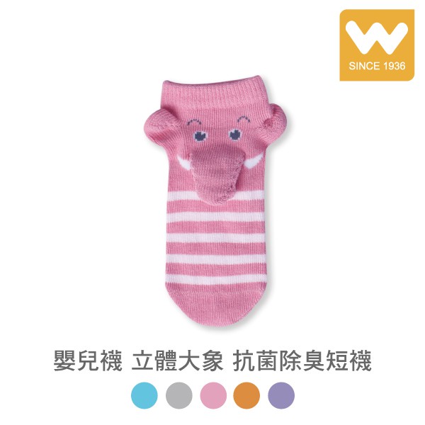 【W 襪品】嬰兒襪 立體大象 抗菌除臭短襪