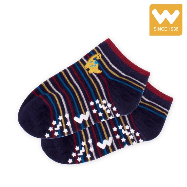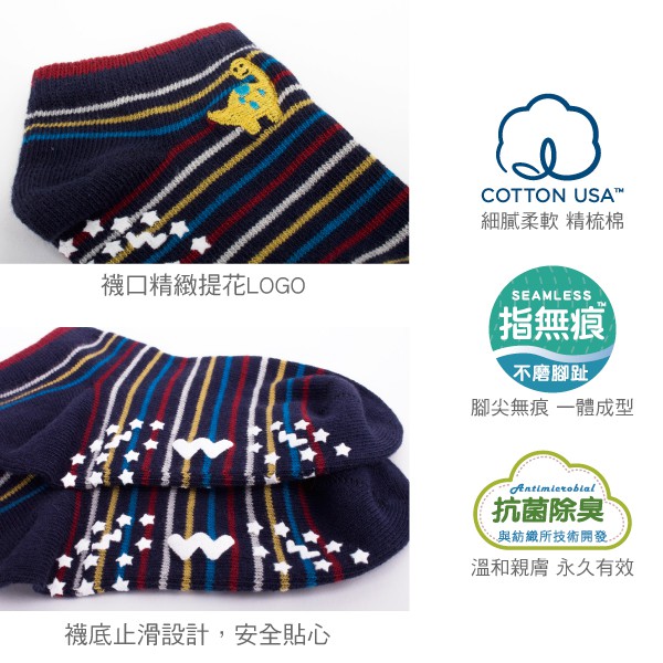【W 襪品】嬰兒襪 指無痕 恐龍彩條 抗菌抗臭短襪