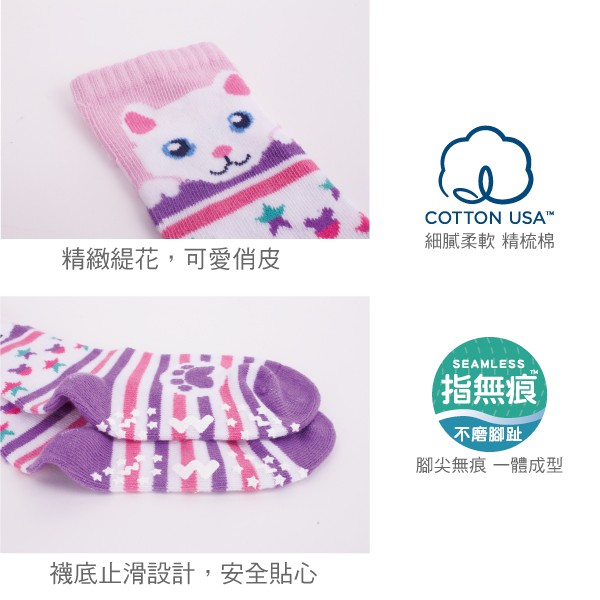 【W 襪品】童襪 指無痕 可愛貓咪半統襪