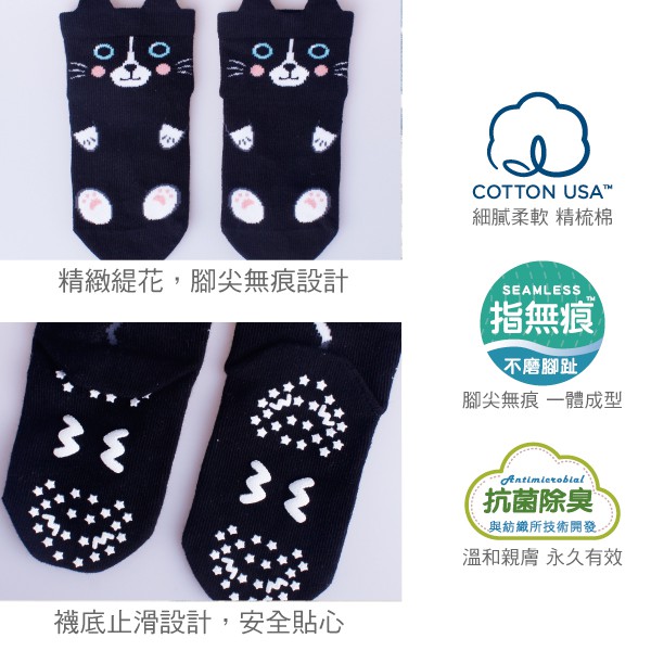 【W 襪品】童襪 小黑貓 抗菌除臭短襪