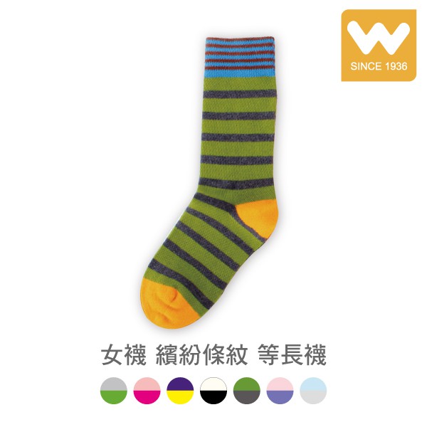 【W 襪品】女襪 指無痕 繽紛條紋 等長襪