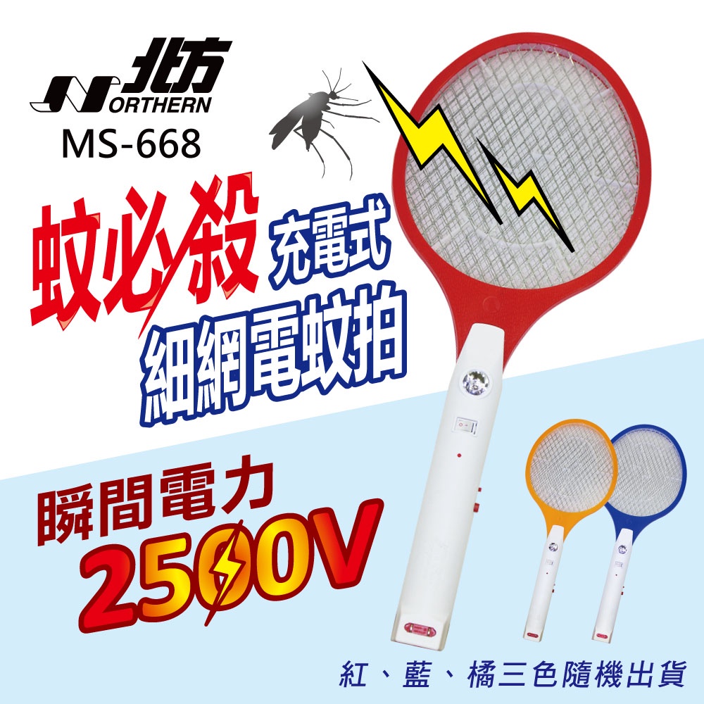 【北方】充電式捕蚊拍 MS-668 (紅、藍、橘三色隨機出貨)∣公司現貨