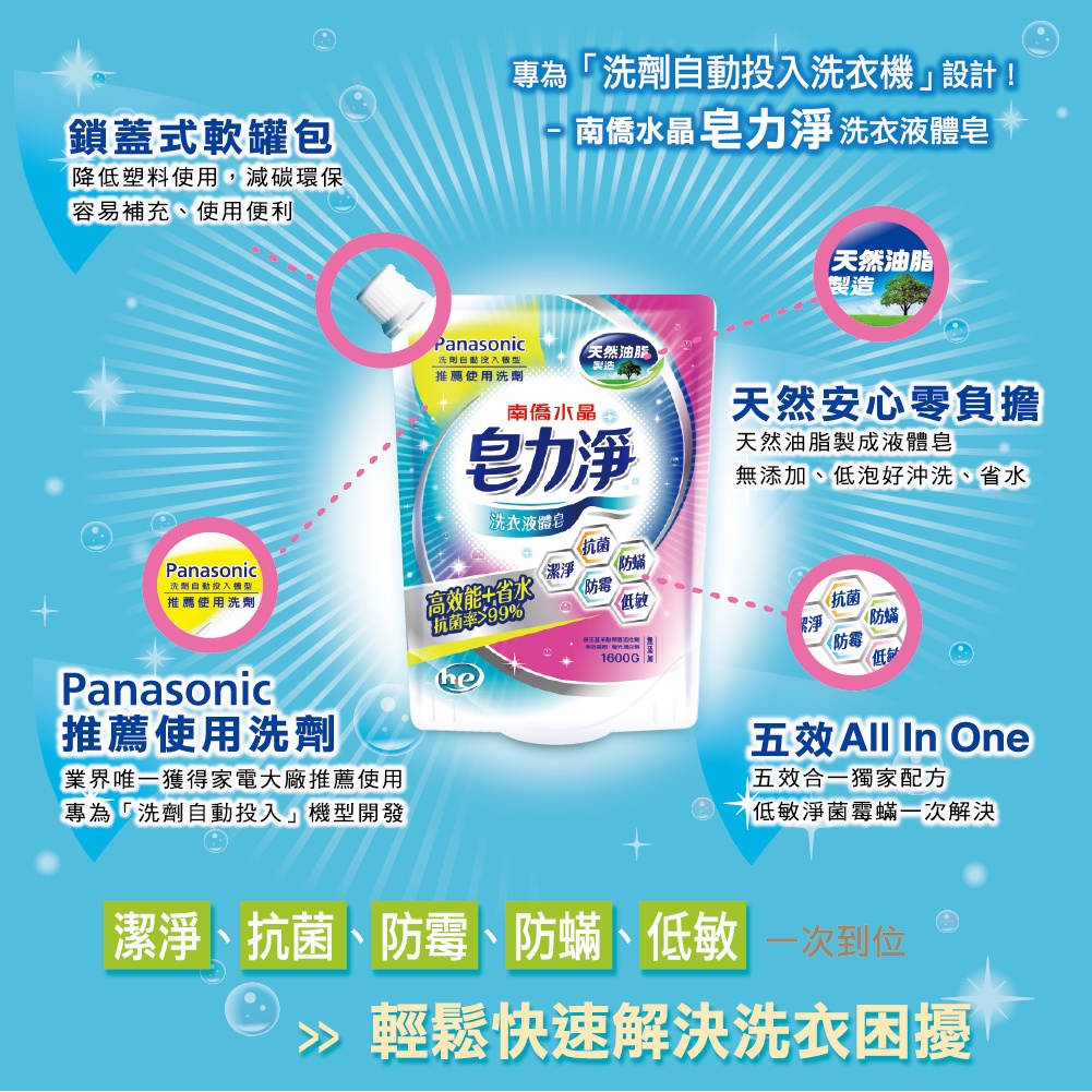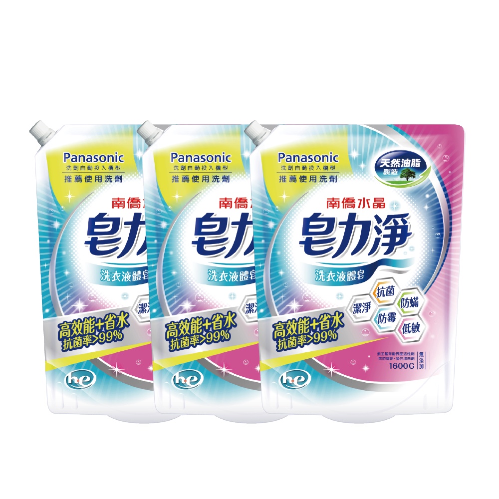 【南僑水晶】皂力淨洗衣液體皂鎖蓋軟罐包1600gX3包