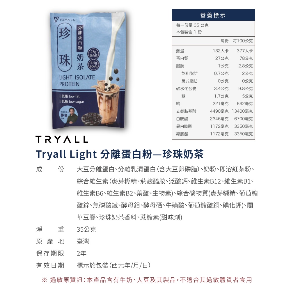 台灣Tryall|Light分離乳清蛋白隨手包(35-38g)_奶茶系列(珍珠奶茶/楓糖奶茶/鴛鴦奶茶/鐵觀音奶茶)