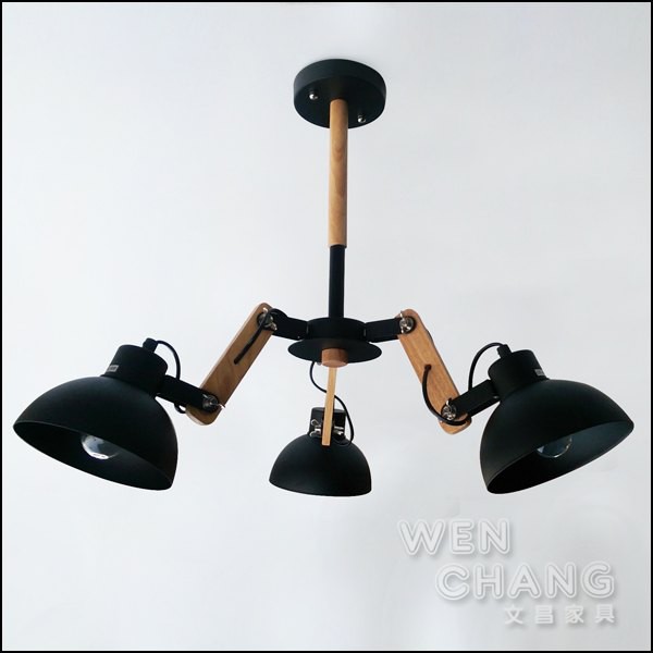 LOFT 工業風 復古 木頭+金屬混搭 達克3燈吸頂燈 三燈頭 可調整款 LCE-003-3