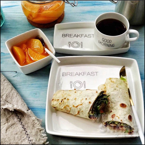 文青手繪風長方盤 正方盤 早餐盤 水果盤 可微波 Z136