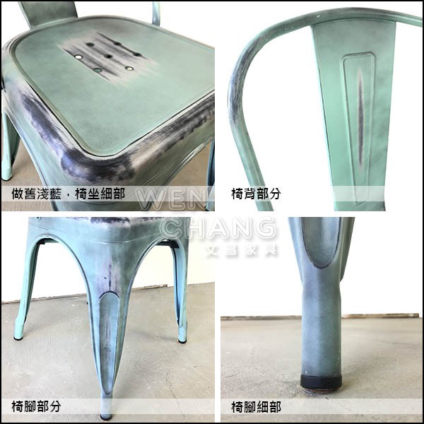 LOFT 工業風復古鐵椅|Tolix 高背餐椅|咖啡廳、餐廳、居家餐椅 做舊淺藍 CH001-SBL