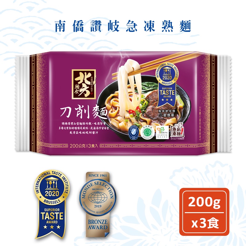 【南僑讚岐】北方刀削麵 (200g x3入/1包) | 急凍熟麵專家