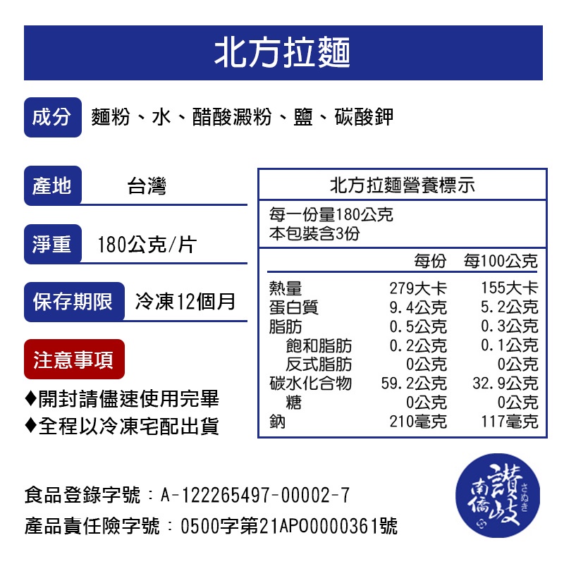 【南僑讚岐】北方拉麵-箱入 (1箱/10包入) | 急凍熟麵專家
