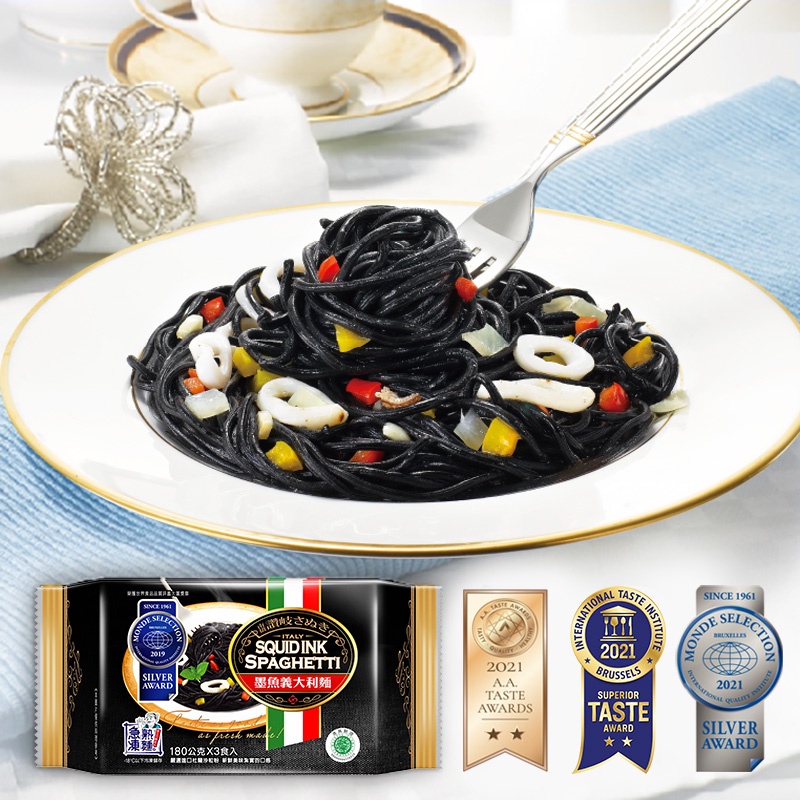 【南僑讚岐】墨魚義大利麵 (180g x3入/1包) | 急凍熟麵專家