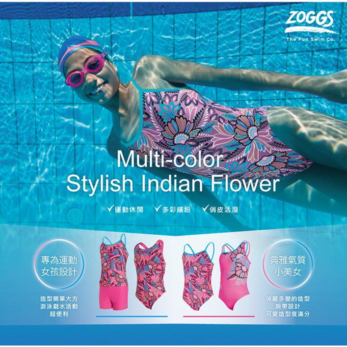 ZOGGS 學生泳衣 花背造型泳衣 大童泳衣 女童泳衣 兒童泳衣 連身泳衣 青少女泳衣 環保泳衣 - 圖騰