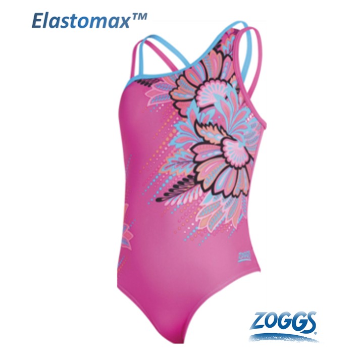 ZOGGS 青少女 斜肩 連身 游泳 泳衣 泳裝 圖騰花