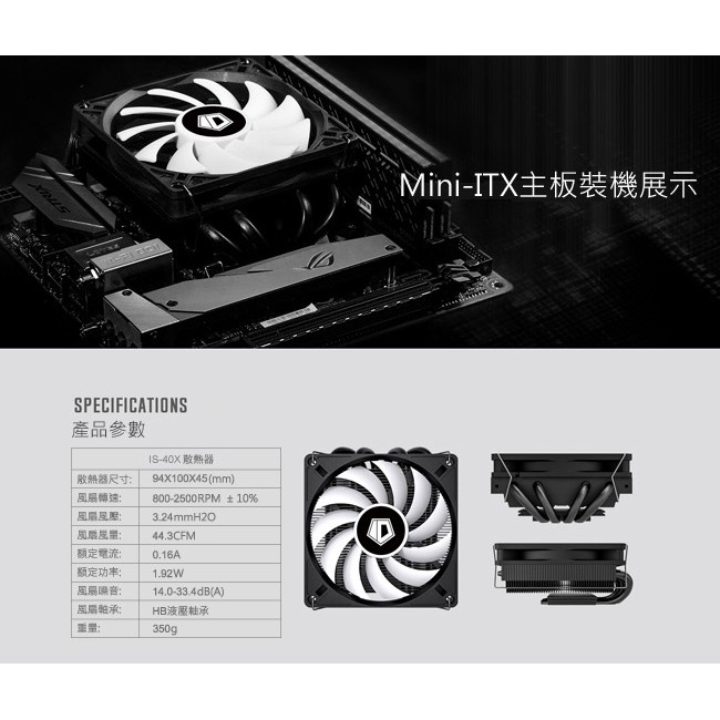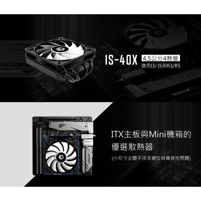 ID-COOLING IS-40X 下吹式/4導管/高4.5/全黑化/TDP:100W/CPU散熱器/原價屋