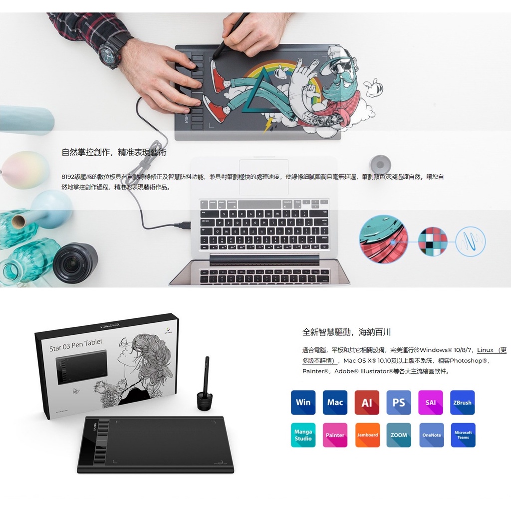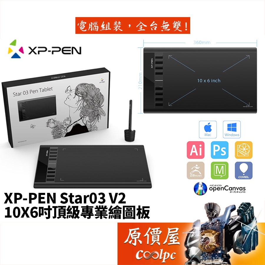 XP-PEN Star03 V2 10X6吋/8192階感壓/左右手切換/支援MAC/繪圖板/原價屋