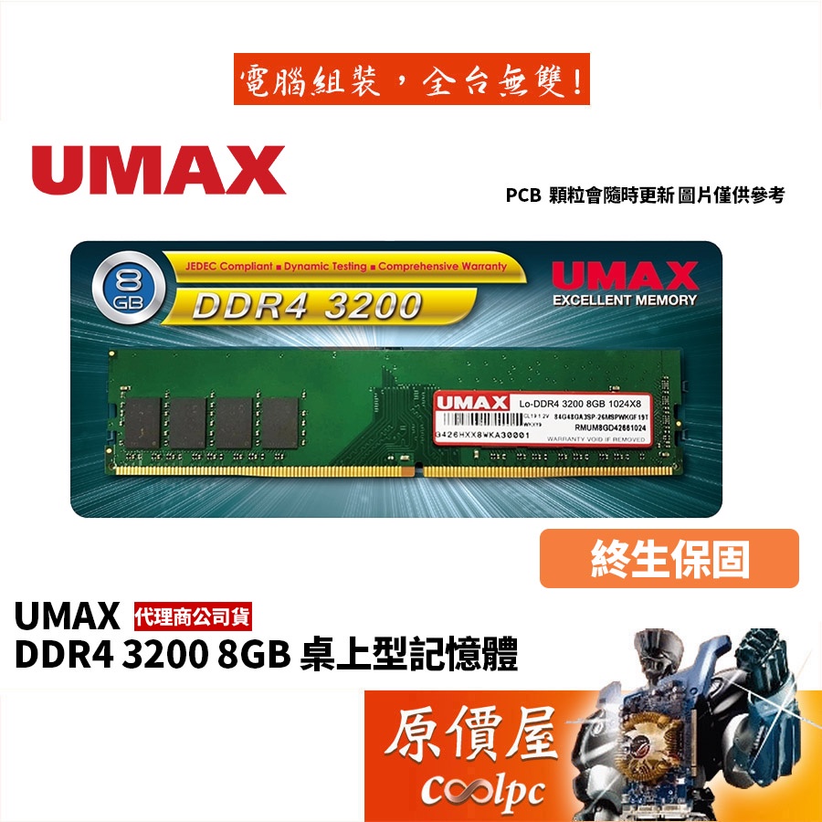 UMAX力晶 8GB DDR4-3200 終身保固/RAM記憶體/原價屋