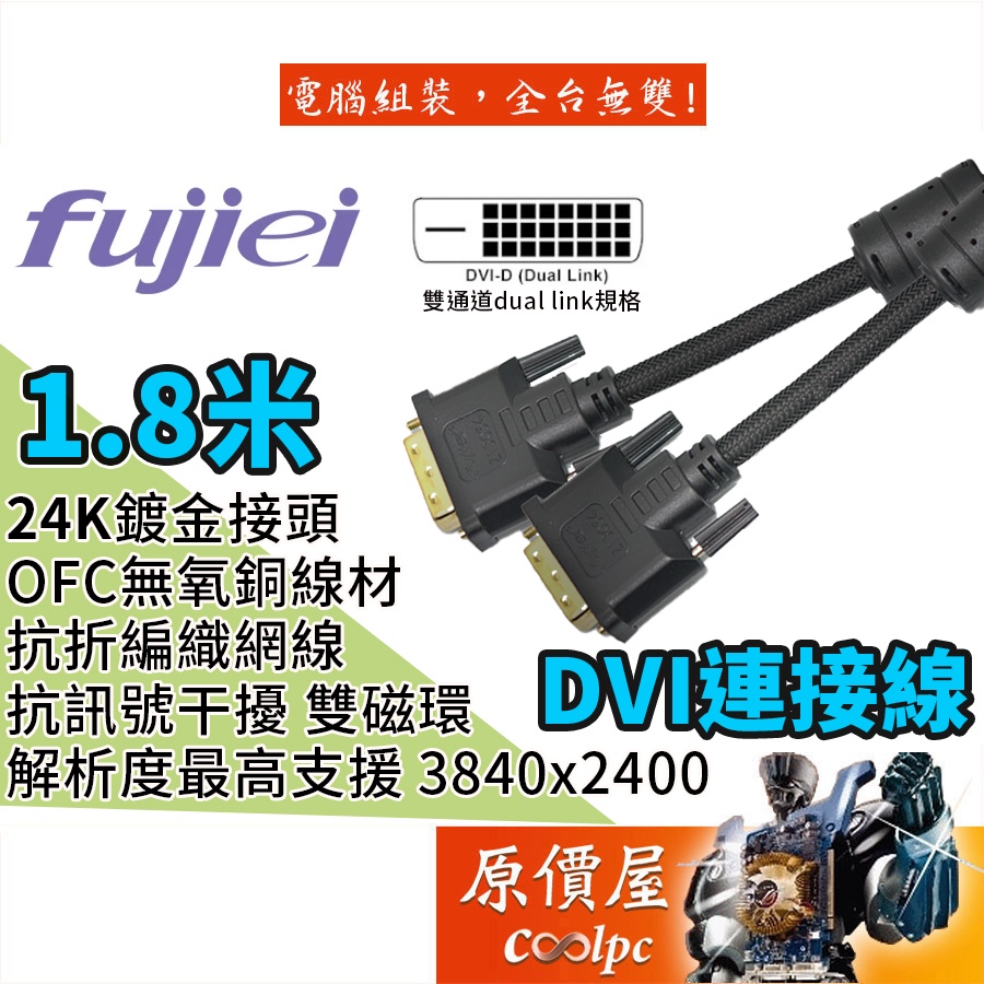 fujiei力祥 DVI 25pin 公-公 1.8M DVI-D/鍍金/數位/編織線/傳輸線/DVI線/原價屋