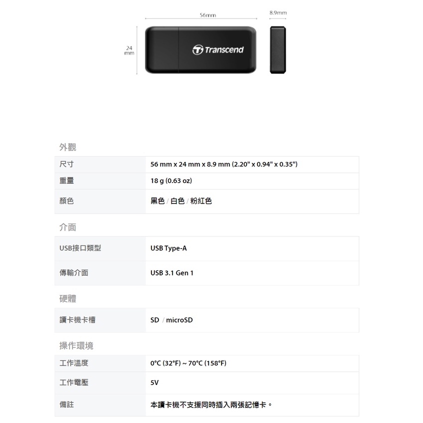 Transcend創見 TS-RDF5W 白/SD/MicroSD/二年/USB讀卡機/讀卡機/原價屋
