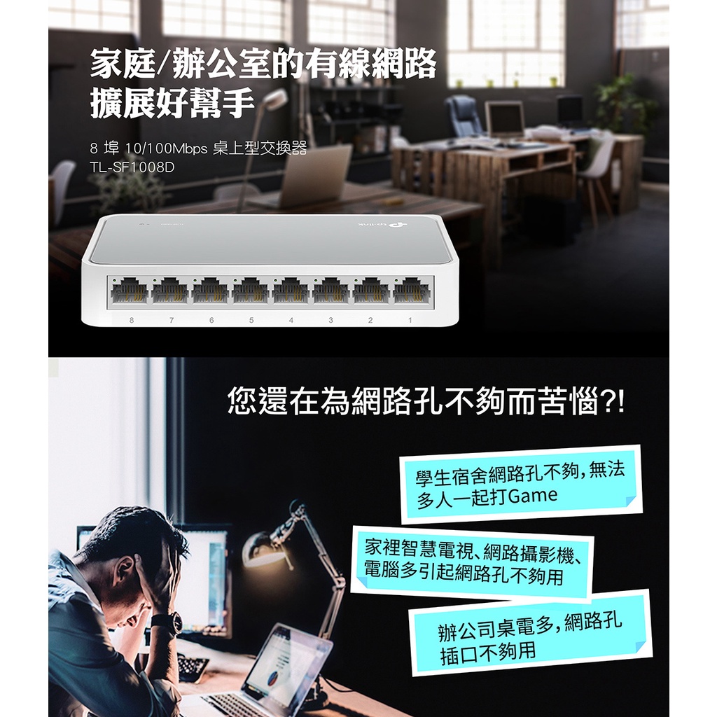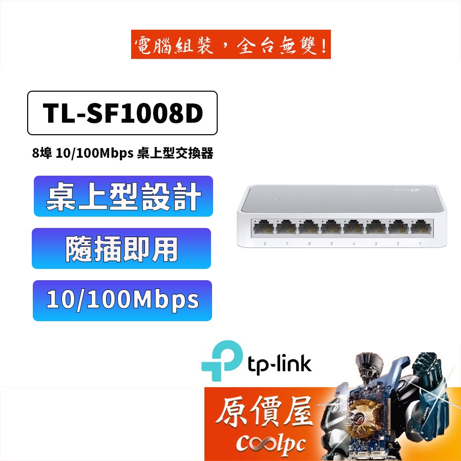 TP-LINK TL-SF1008D【8埠】10/100交換器/三年保固/交換器/原價屋