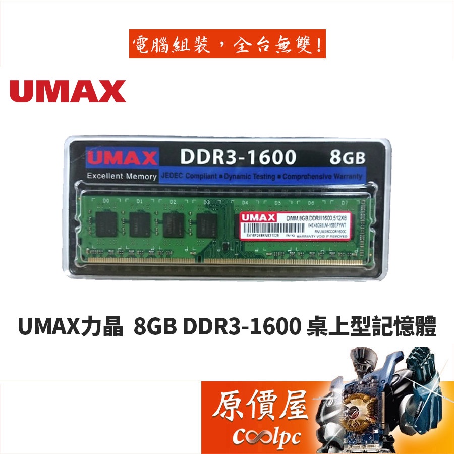 UMAX力晶 8GB DDR3-1600 終身保固/RAM記憶體/原價屋