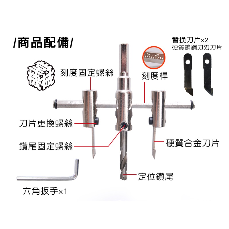 【機械堂】自由錐 木工 DIY 可調式 開孔器 《優惠中》 天花板開洞 雙刀刃 鑽尾 壓克力開洞