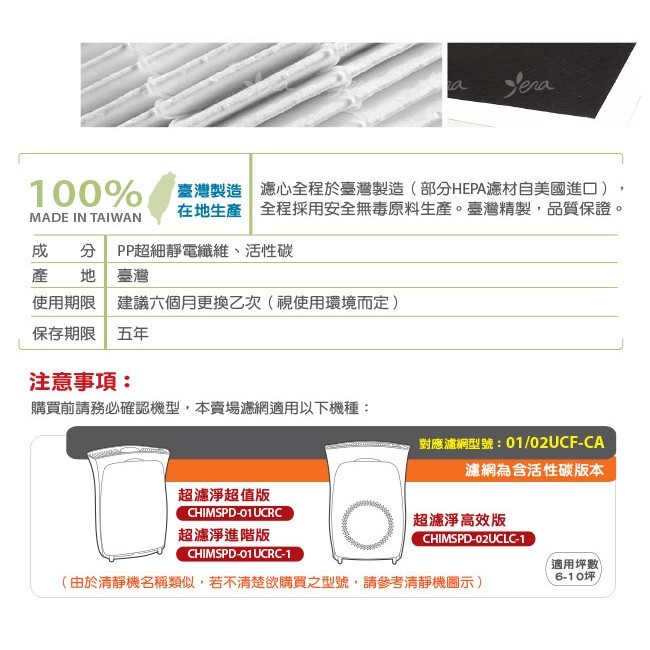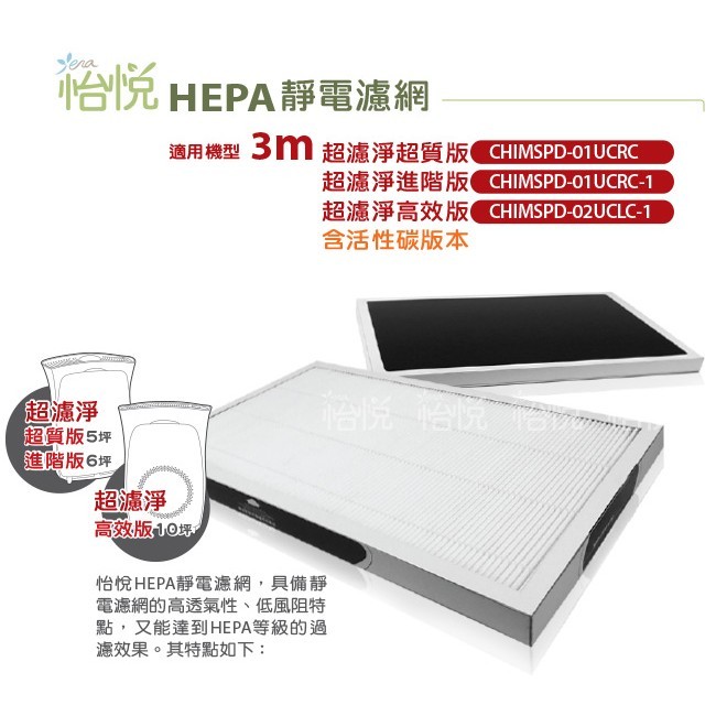 怡悅 HEPA 活性碳 濾網 適用 3M 超濾淨 6坪 10坪 超質版 高效版 進階版 CHIMSPD-01/02 CA