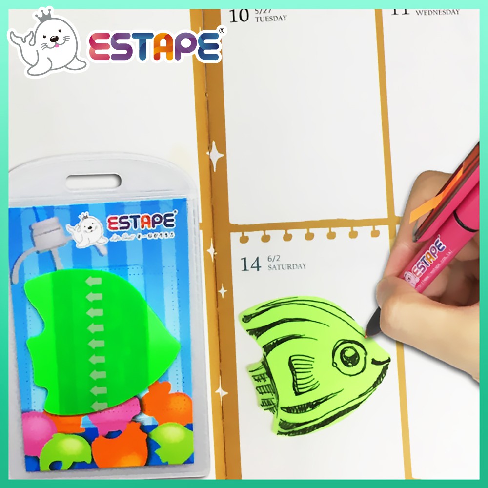 【王佳ESTAPE】Memo造型隨手卡系列 螢光綠(可愛圖案.手作.塗鴉.標籤.註記.書寫.便利貼.日記.留言.提醒)
