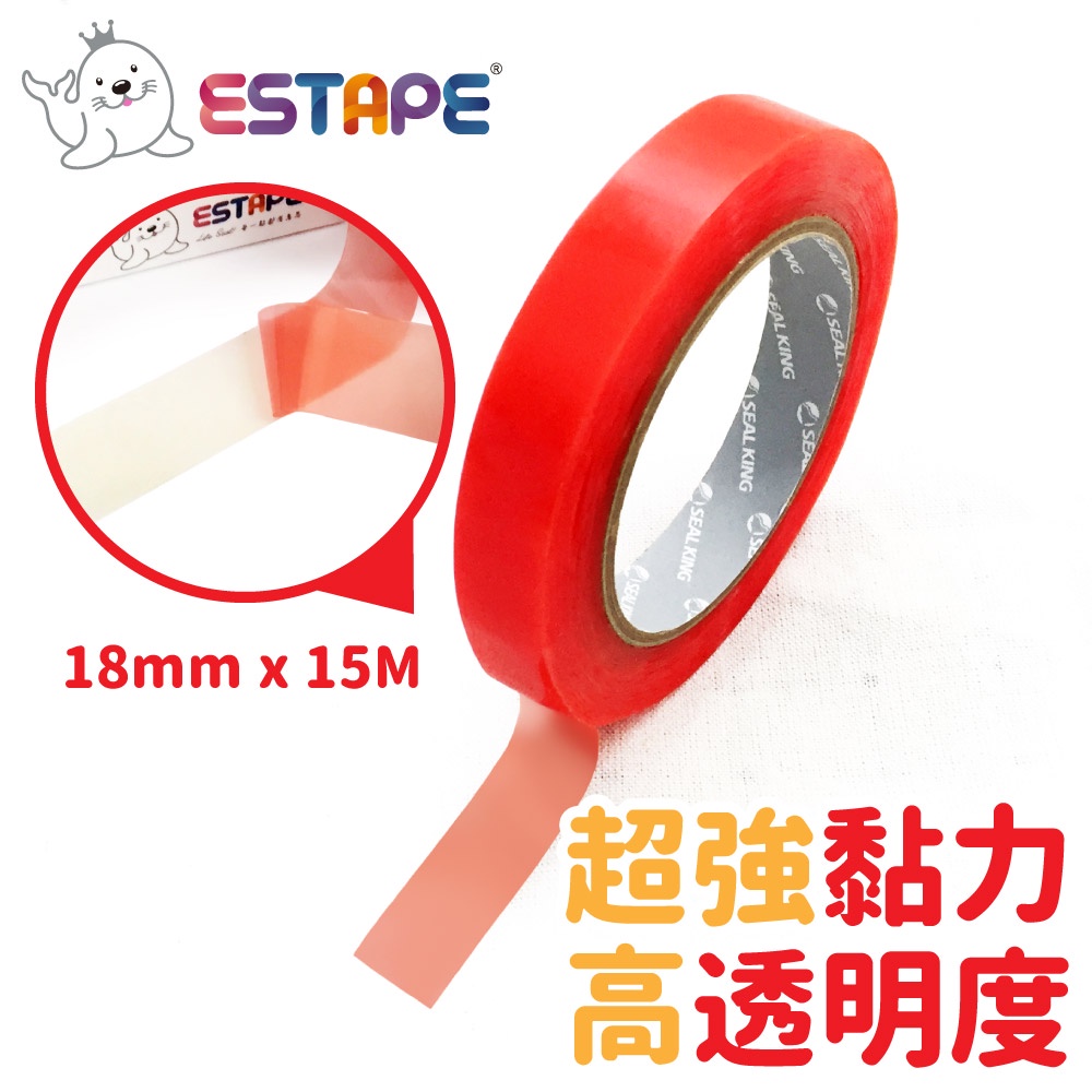【王佳ESTAPE】紅膜PET透明雙面膠帶( 壓克力膠 雙面膠 透明膠帶 文具 辦公室 強力 耐高溫 超強黏)