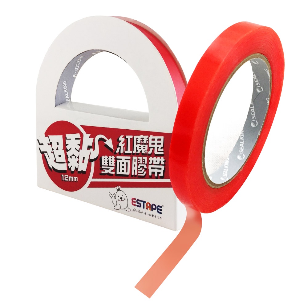 【王佳ESTAPE】超黏紅魔鬼雙面膠帶 12mm x 15M(透明.黏貼.手工.修繕.固定.修補.高黏,紅膜雙面膠)