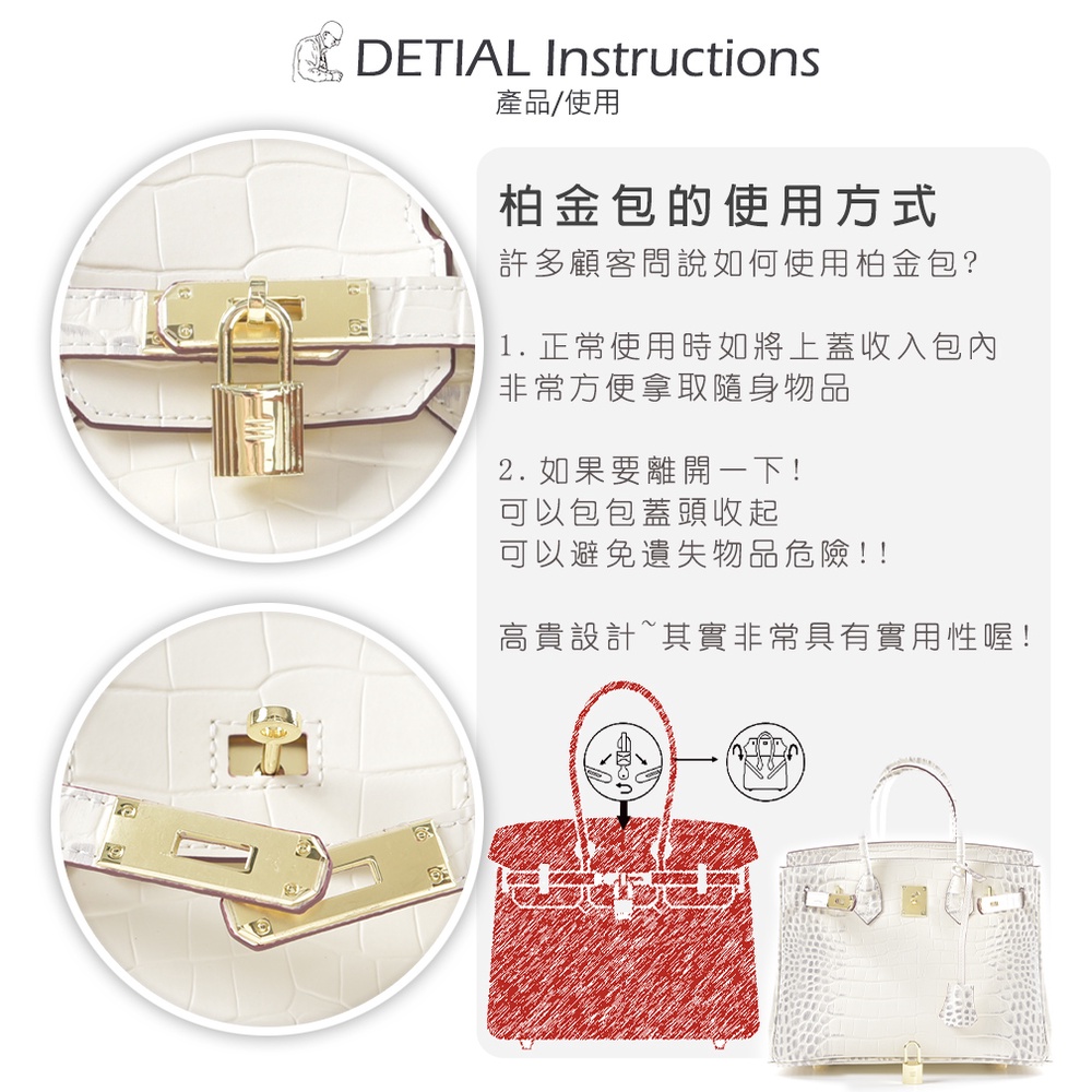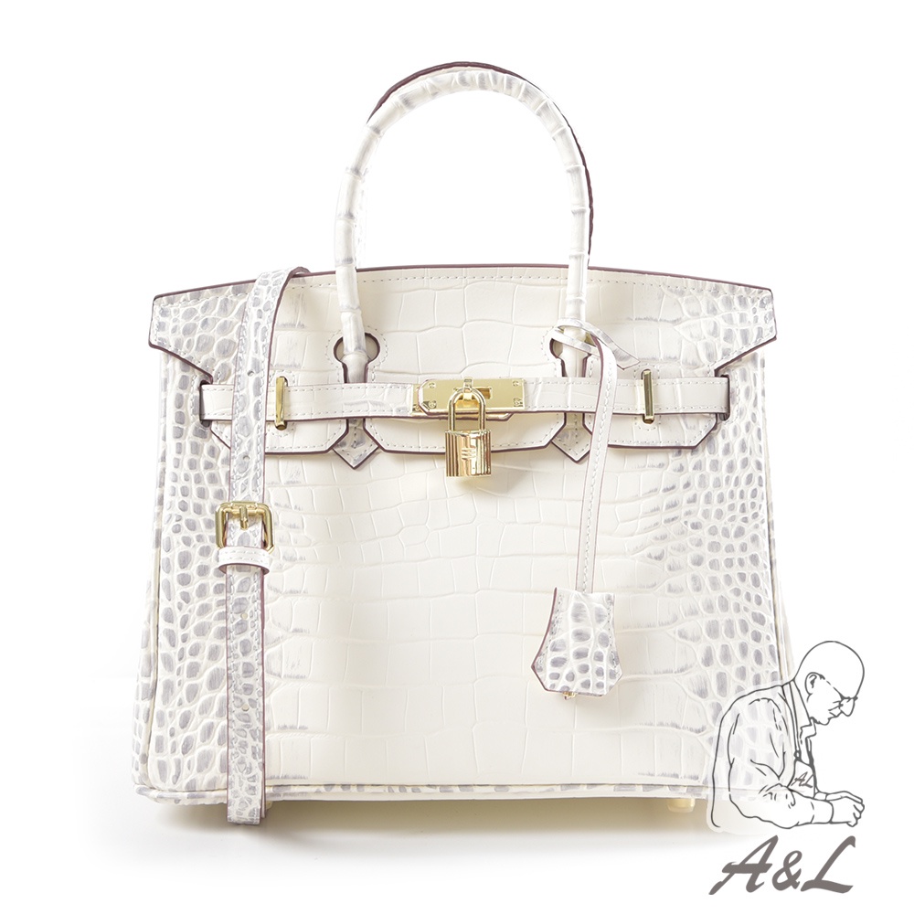 【A&L老工匠】名媛Jean柏金鱷魚紋真皮包30cm-喜馬拉雅白