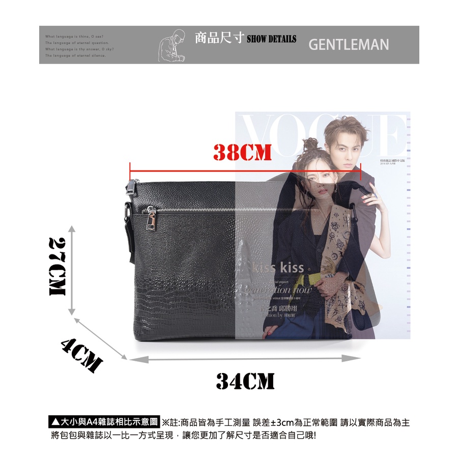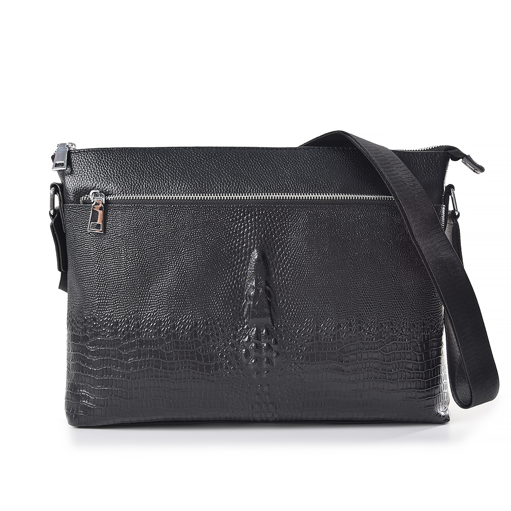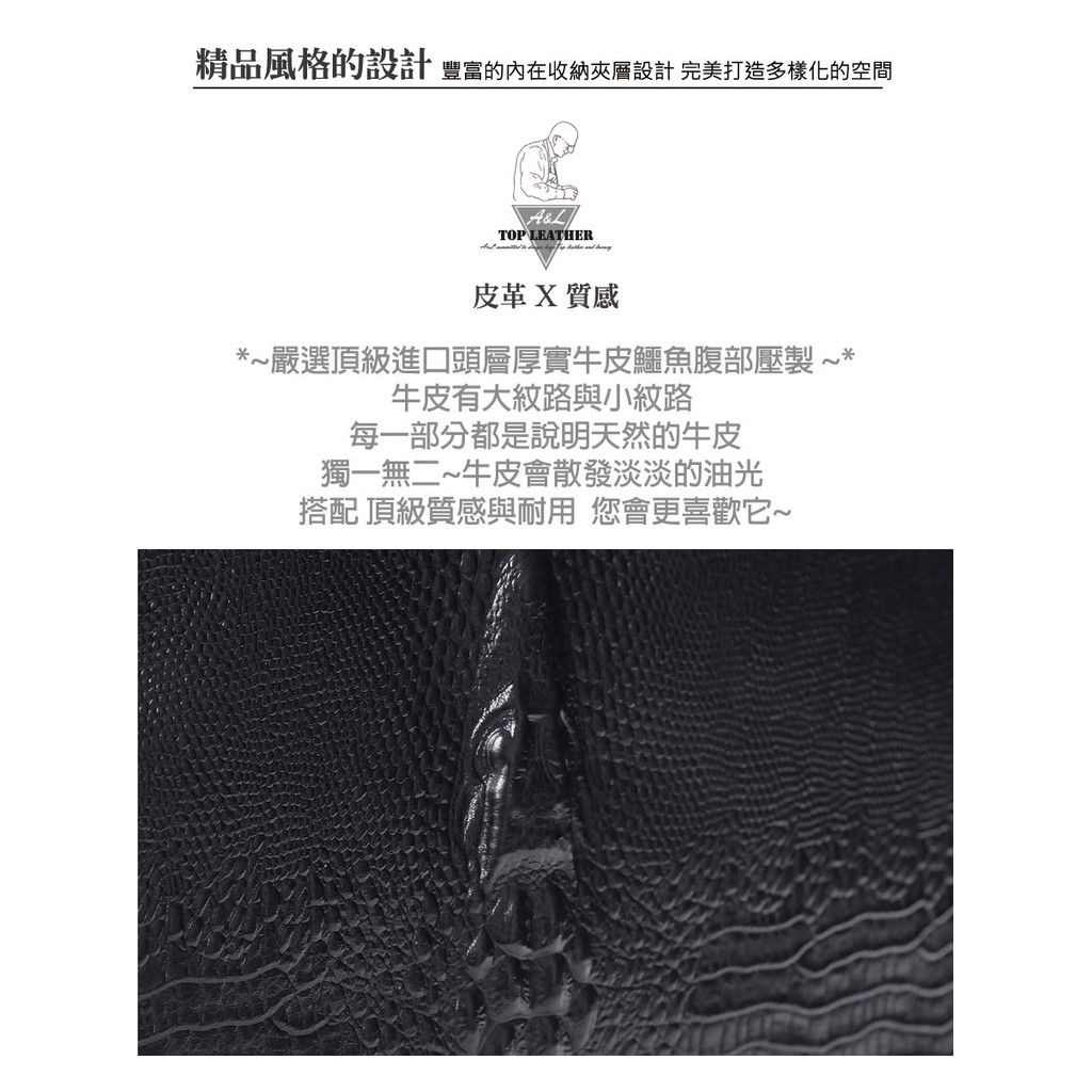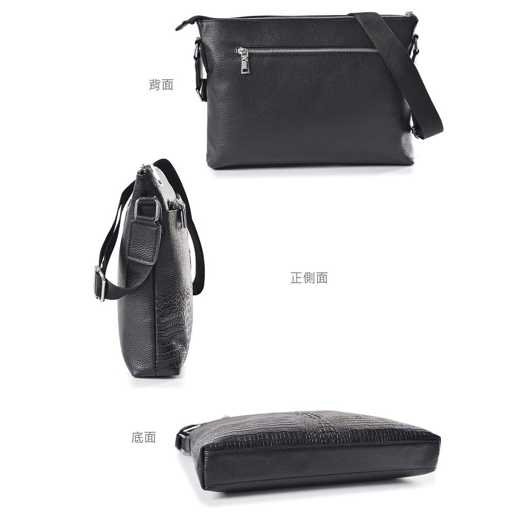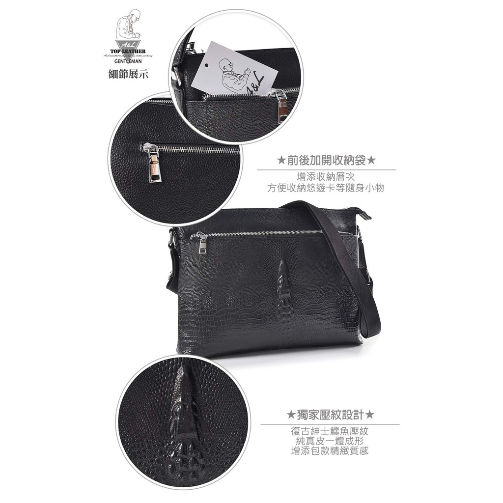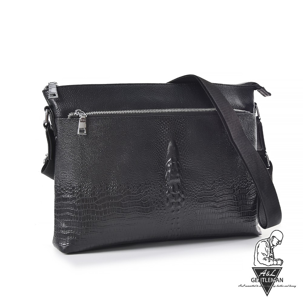 【A&L老工匠紳士館】現貨台灣丨出貨牛皮紳士側背包Leonidas潮流鱷魚壓紋肩背側背款-尊爵黑