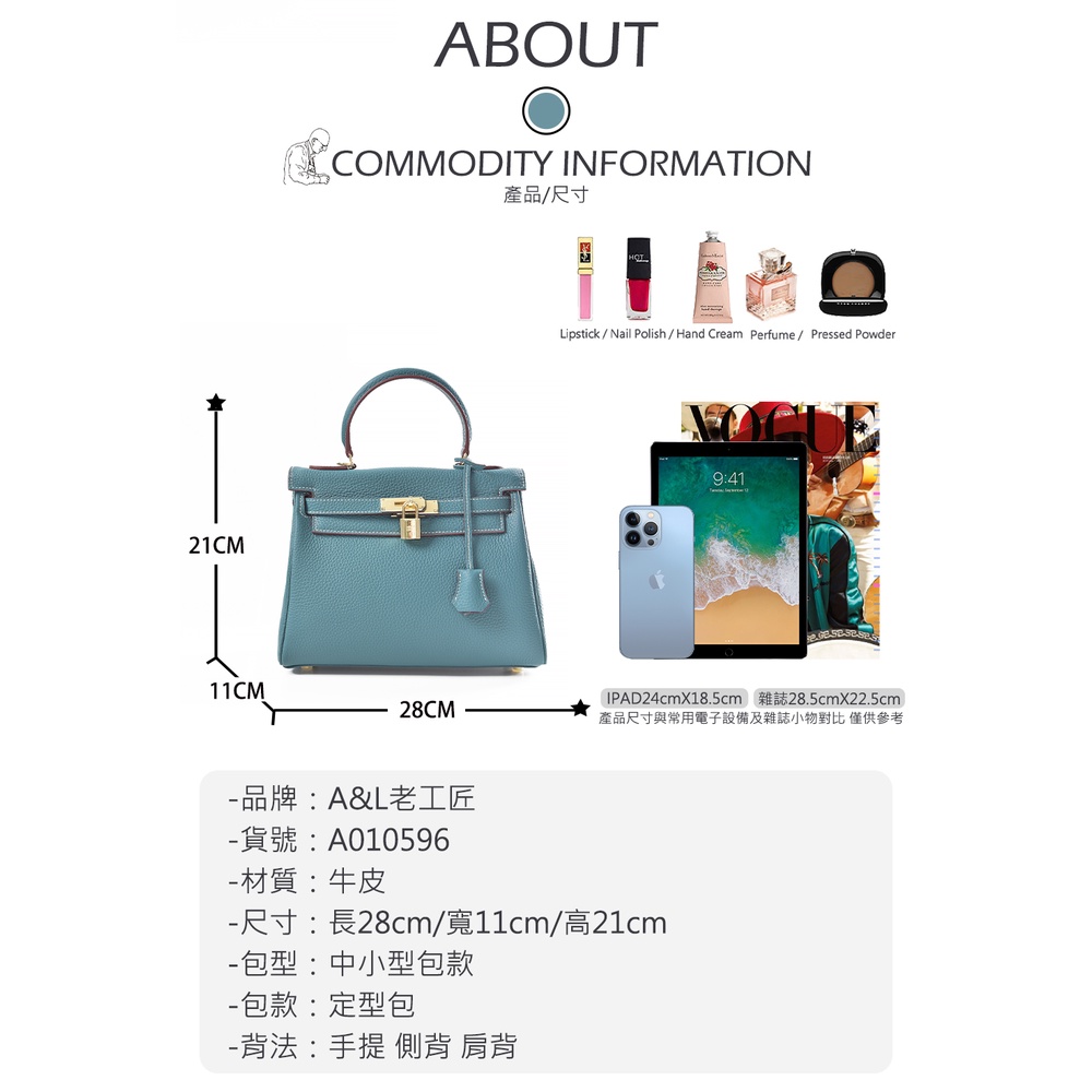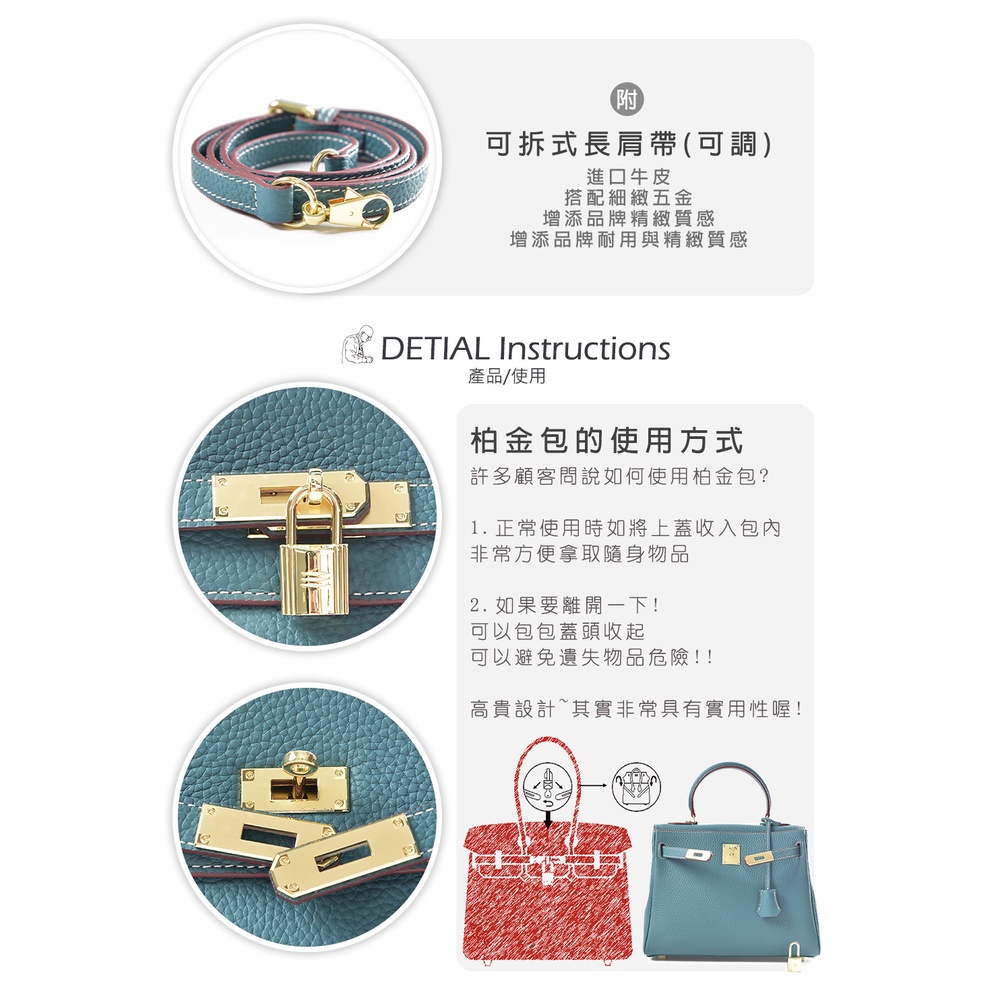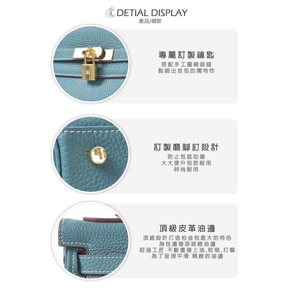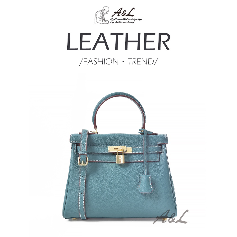A&L老工匠-真皮手工牛皮頂級名媛凱莉包手提側背包-28cm(真皮包包 土耳其藍)