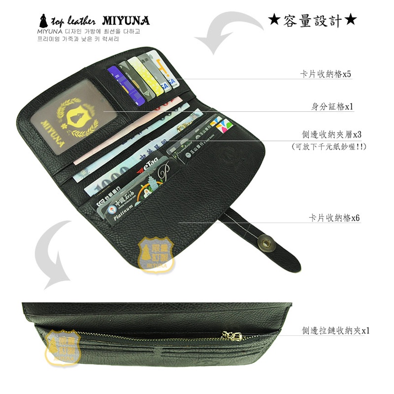 【MIYUNA米友娜】瑕疵品-奧黛麗赫本經典真皮長夾-魅力黑