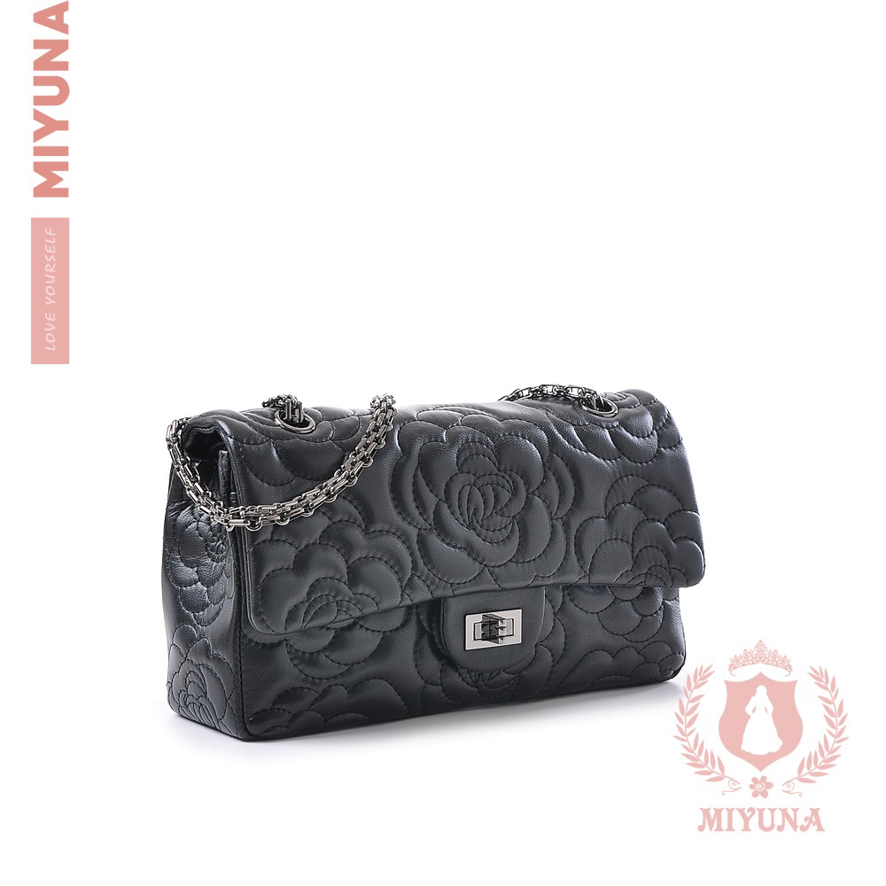 【MIYUNA】現貨台灣丨出貨香奈經典繡花真羊皮包-魅力黑