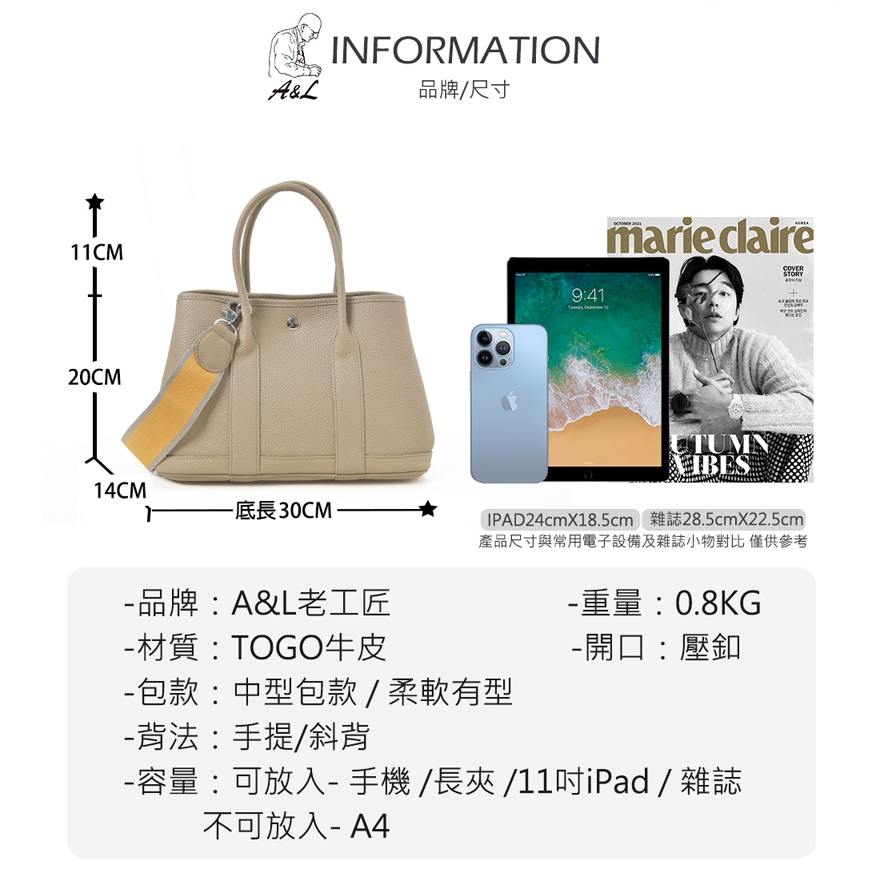 A&L老工匠-真皮牛皮精品經典柏金花園包30cm(真皮包包 大象灰)