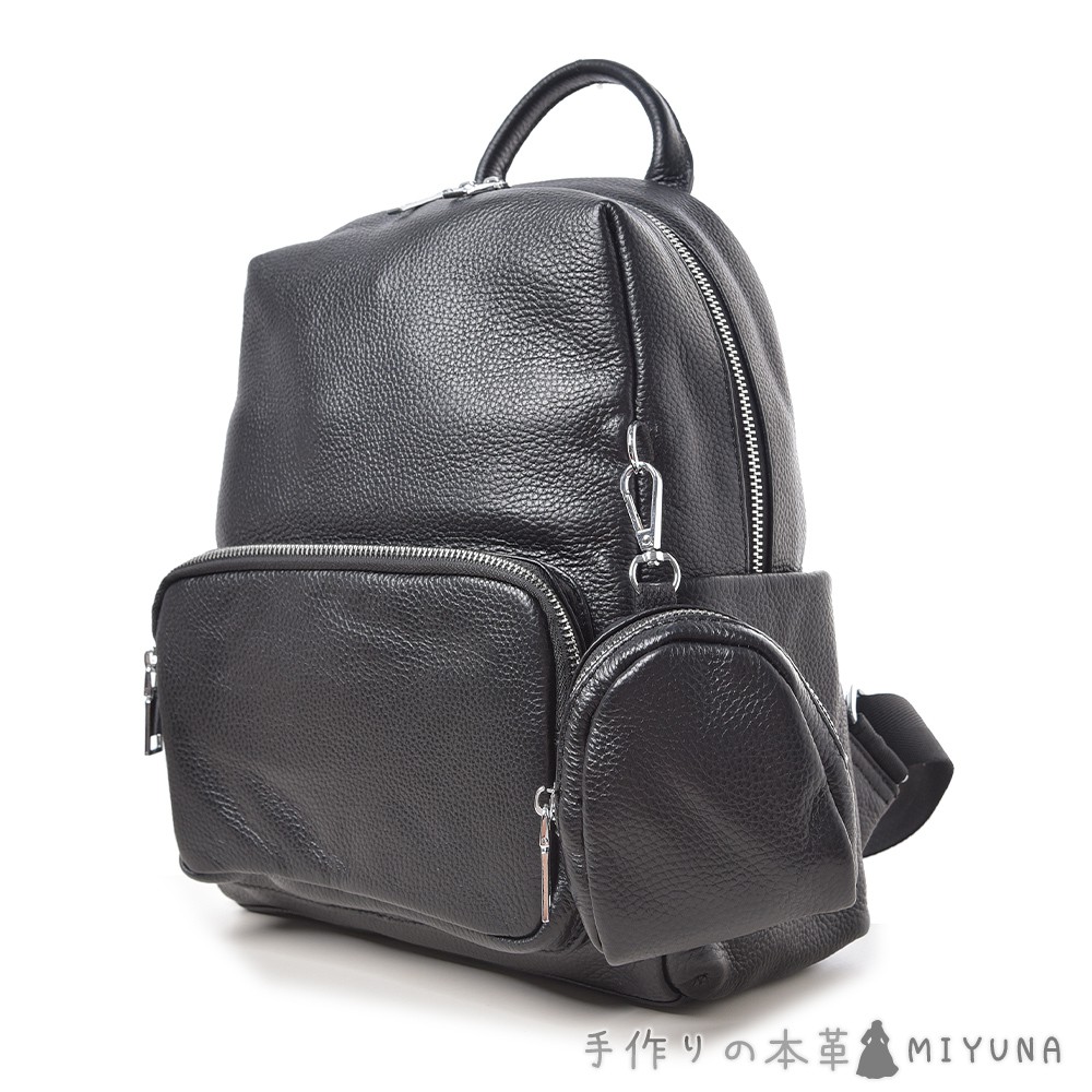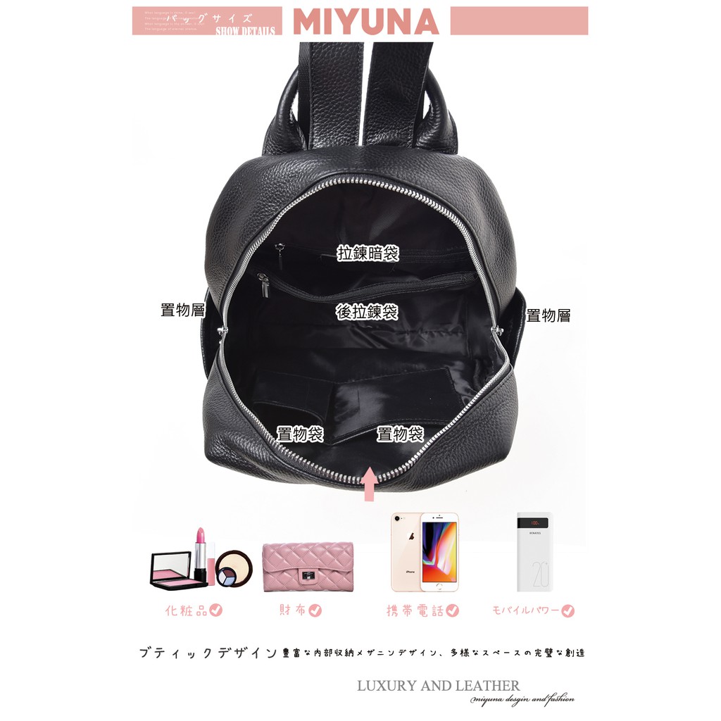 MIYUNA 米友娜-真皮牛皮後背包零錢雙袋Viv維維潮流款(真皮包包 氣質黑)