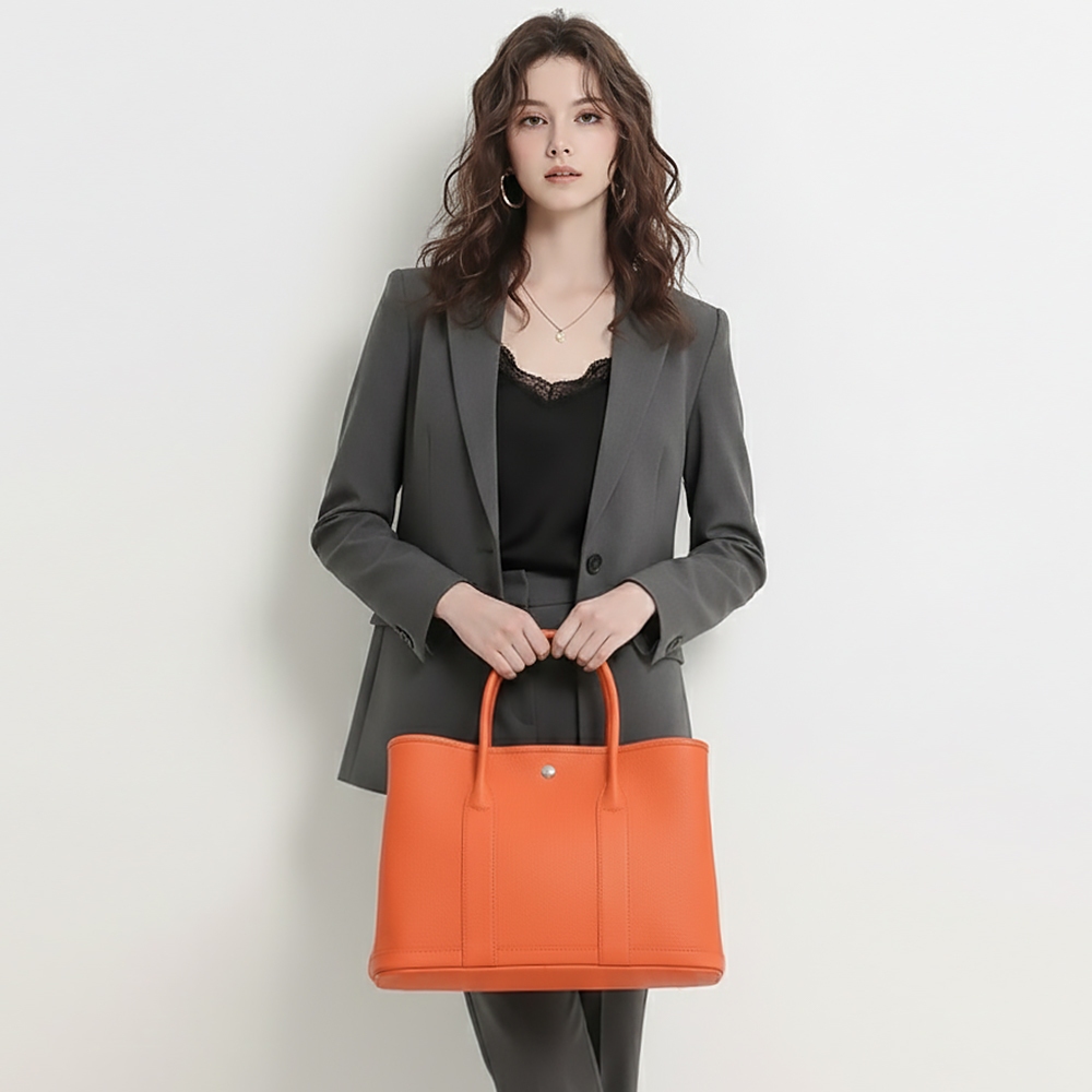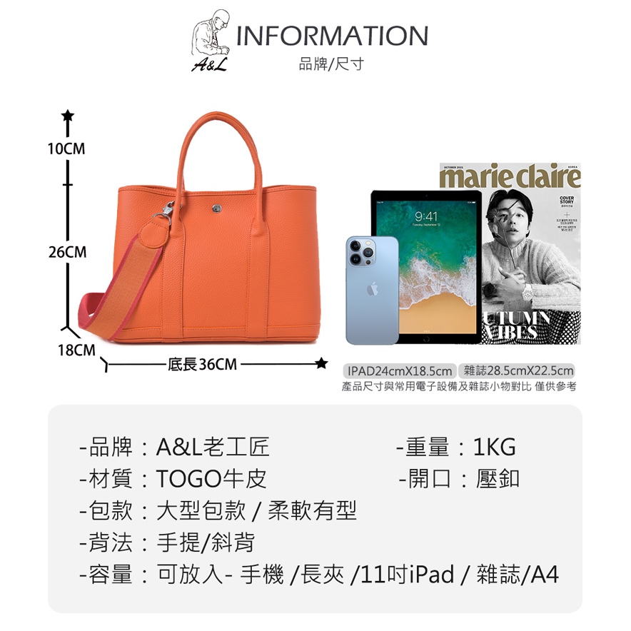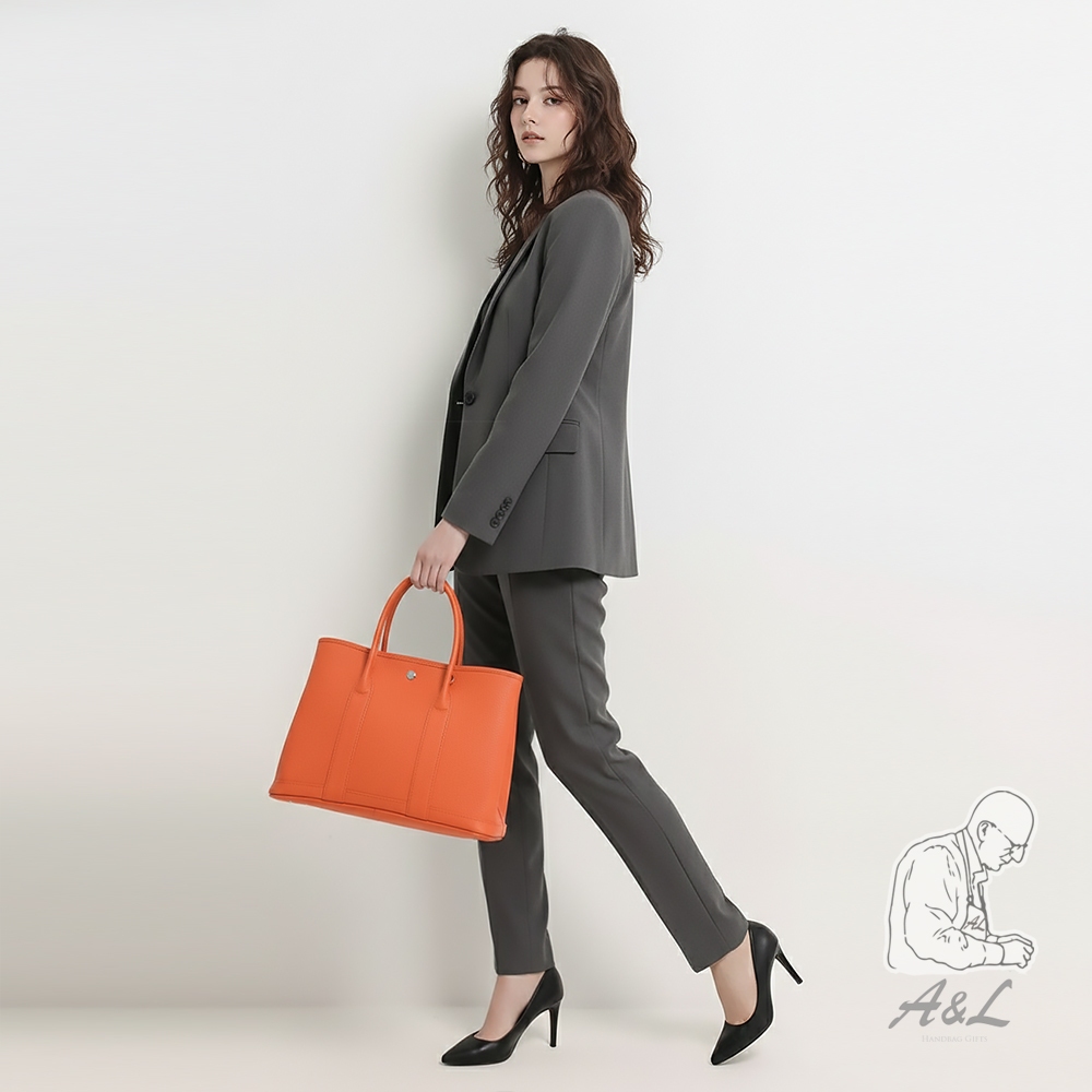 A&L老工匠-真皮牛皮精品經典柏金花園包36cm(真皮包包 愛瑪橘)